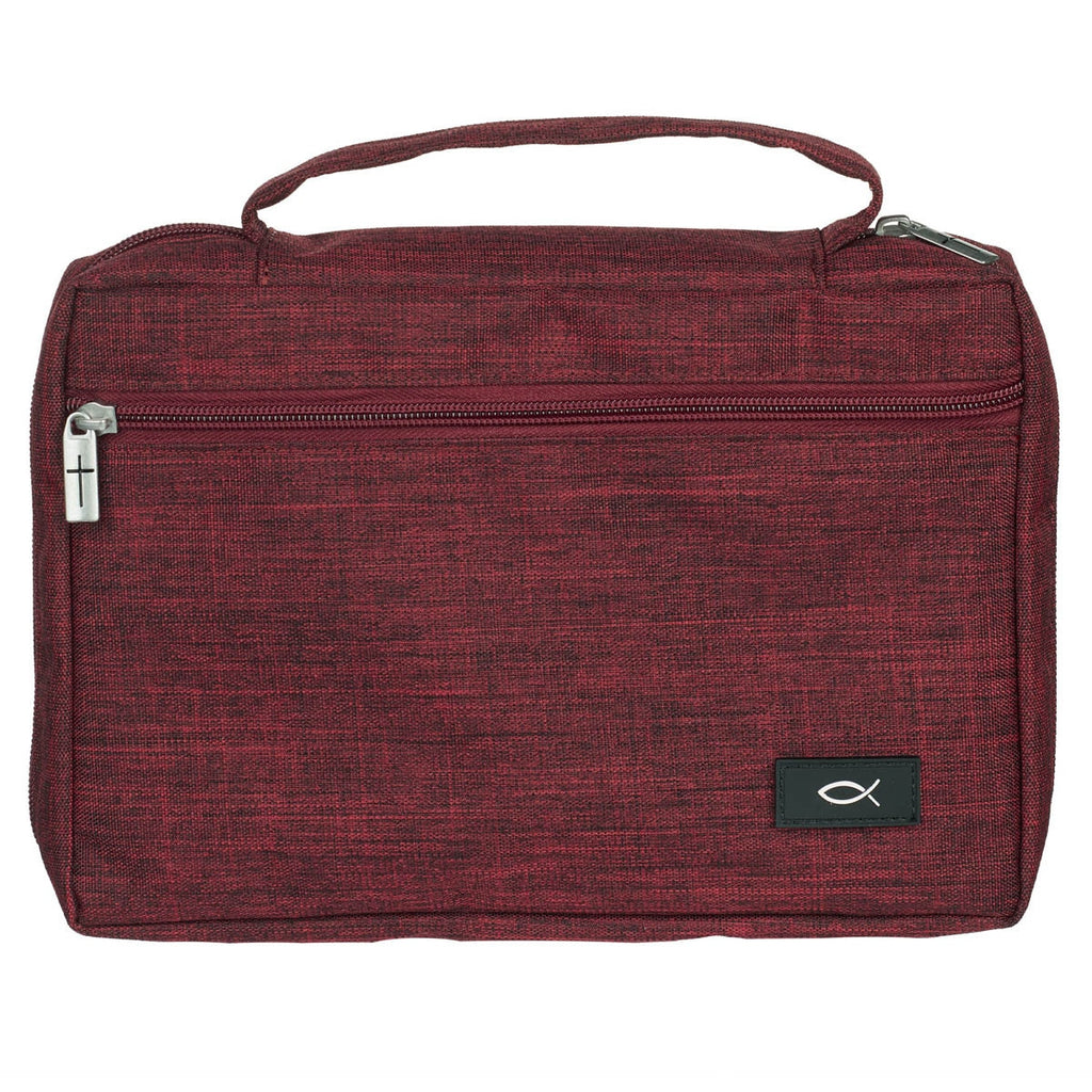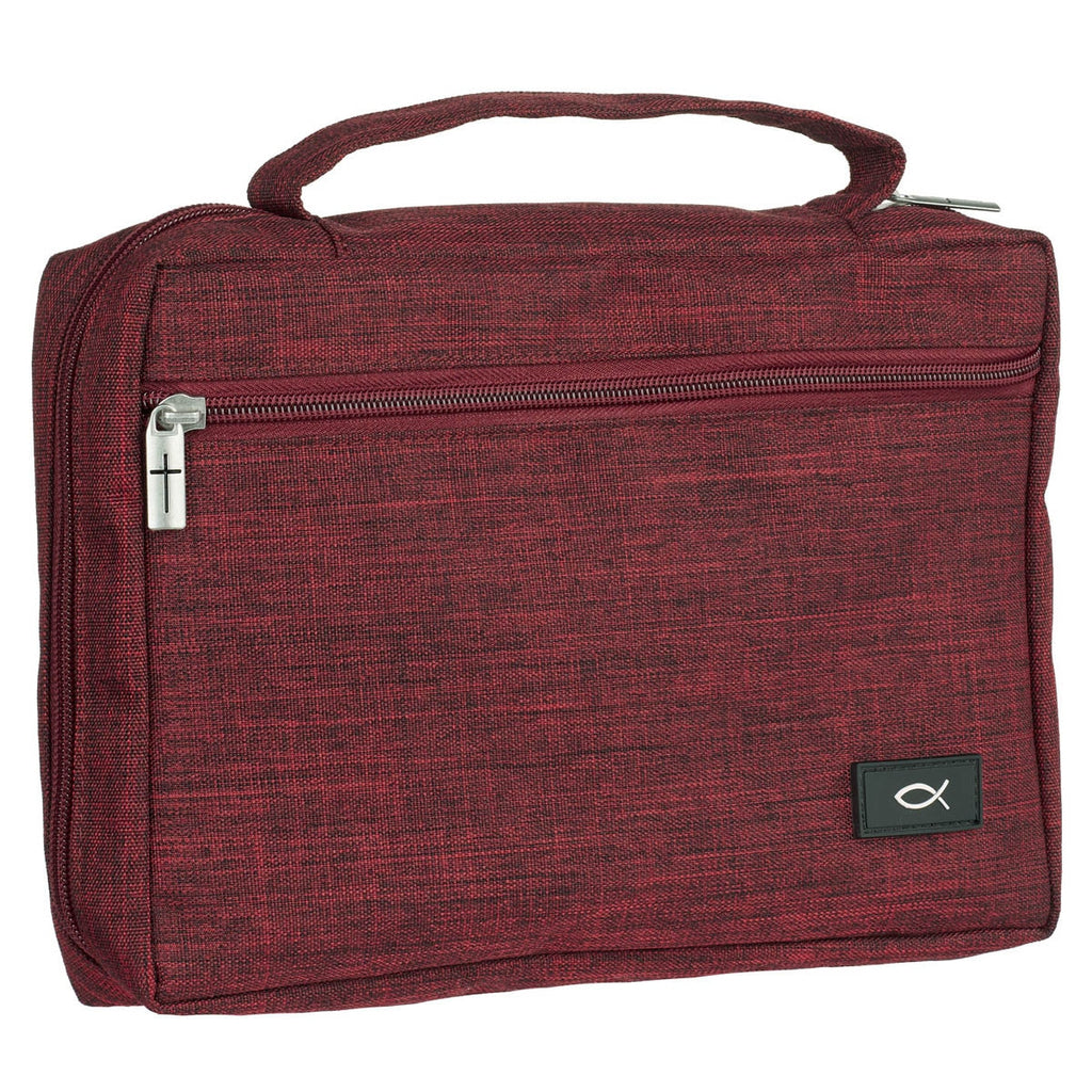 Protect your Bible with the Cranberry Red Poly-canvas Value Bible Cover with Ichthus Patch. This low-cost but durable Bible case is all you need to keep your most prized possession safe from daily wear and tear.