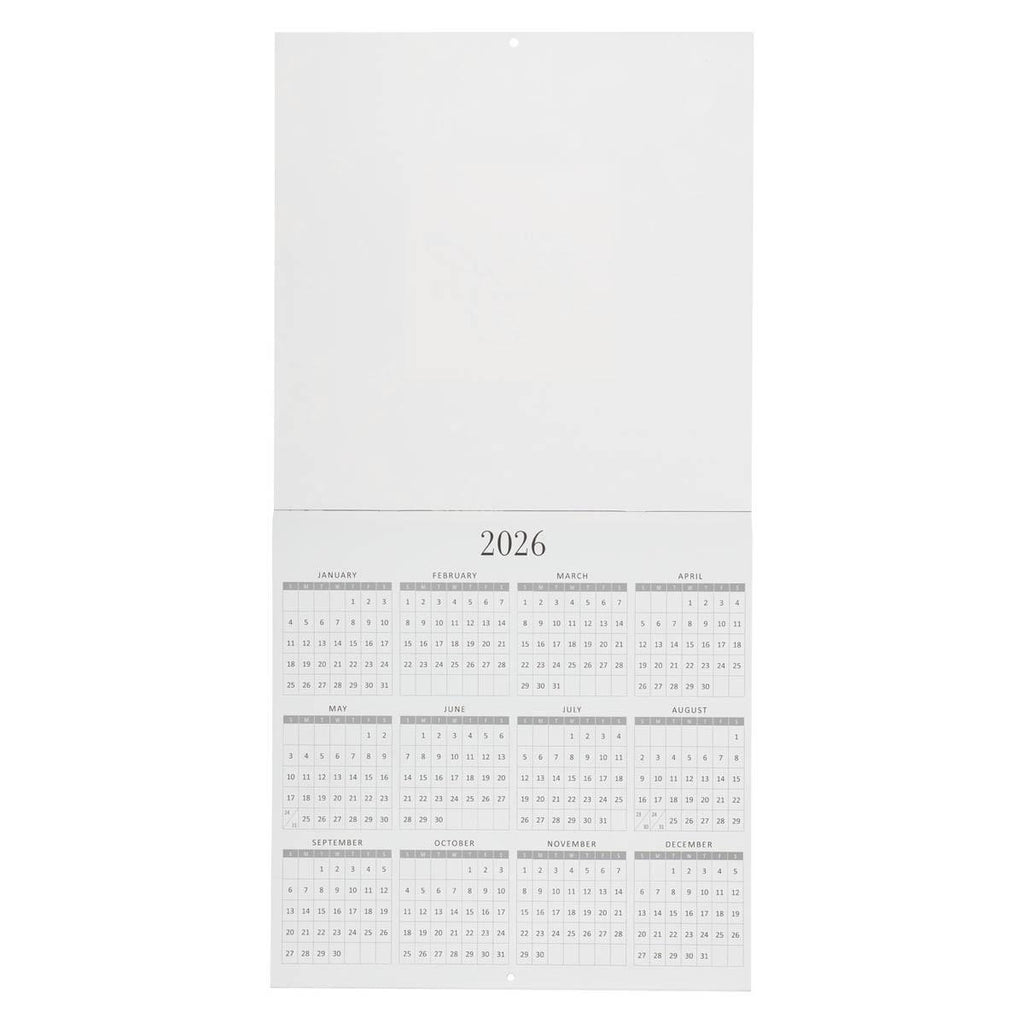 The grid for each month is arranged in a block-style format, with weeks and dates clearly labeled. With plenty of room to take note of meetings, events, vacations, holidays, and birthdays, you can keep your year all in one place. A small hole at the top of each page allows for effortless hanging on a hook in a kitchen, bedroom, office, or cabinet.