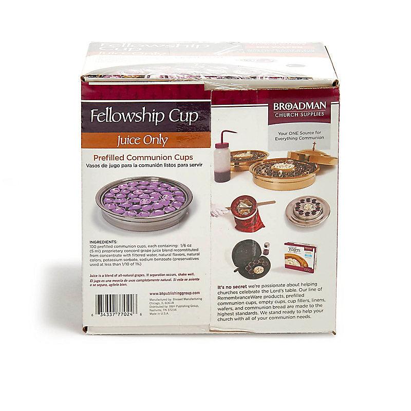 The Fellowship Cup is a prefilled communion cup which contains 100% Concord Grape Juice Blend and Unleavened Wafer