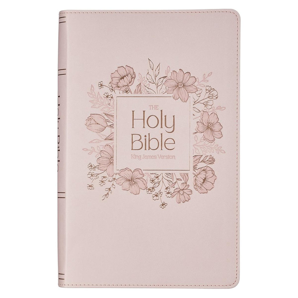 With its soft blush floral design and easy-to-read giant print, the Blush Floral Faux Leather Standard-size Giant Print KJV Bible Thumb Index< i> is a lovely choice for women who want a Bible they can turn to every day.< p>