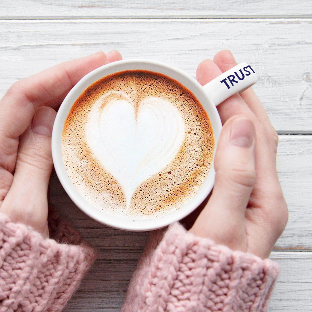 Wording on mug: ˜Trust in the Lord ¦and he shall direct your paths. - Proverbs 3:5-6