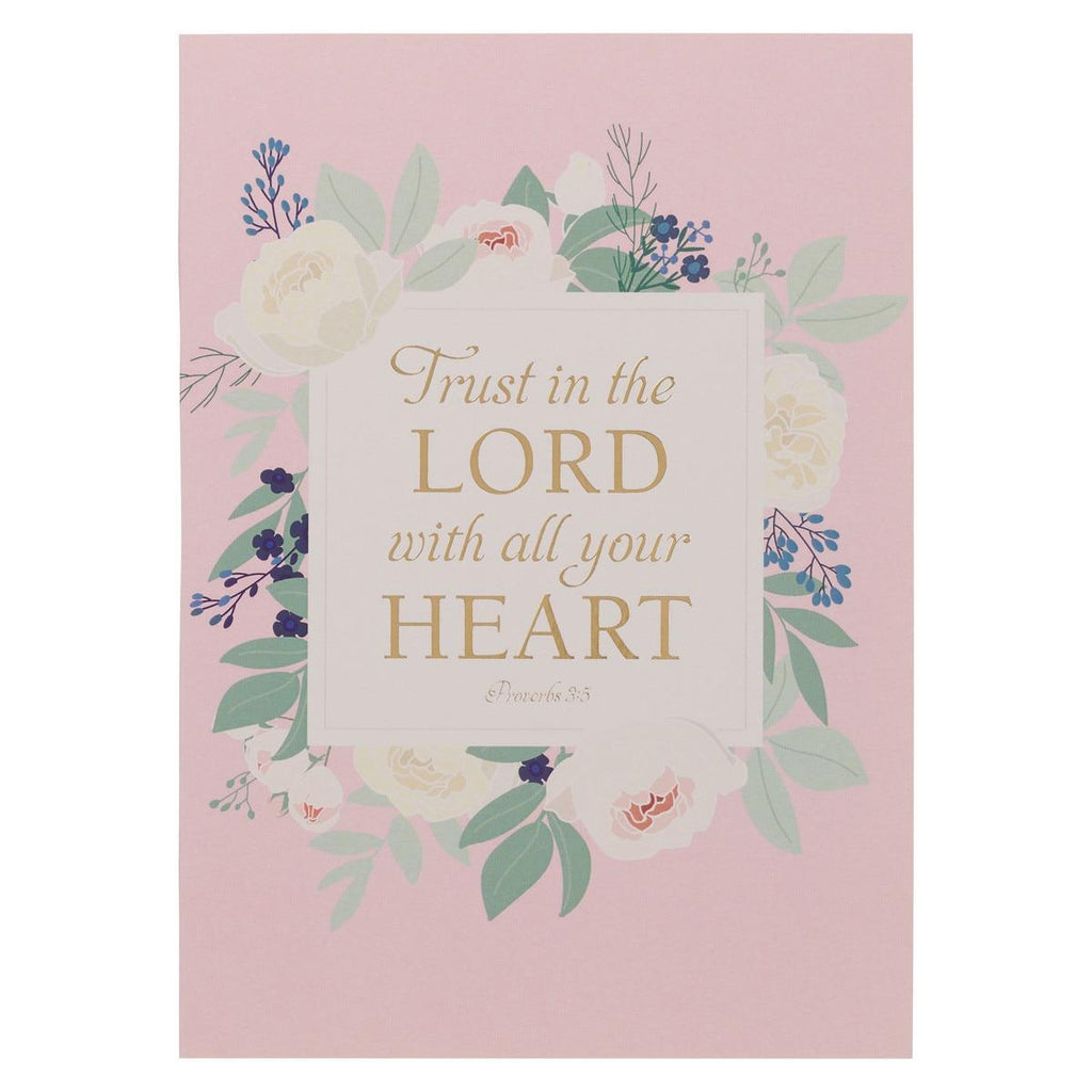 The Trust in the Lord Pink Floral Medium Notebook is a charming gift for a daughter headed off to college, a bridesmaid in your wedding party, or a friend stepping out in faith. Encourage trust in every season when you pair the Trust in the Lord Pink Floral Medium Notebook with a pen for a small but meaningful gift.