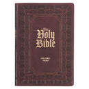 The giant print Bible features smooth front and back faux leather covers are adorned with exquisite gold-foiled frames. The design is further enhanced with Greek-themed heat-debossed fern and scroll work, lending a captivating depth to its appearance. The front cover showcases a gold-foiled title presented in a stylish Old English font, complemented by a heat-debossed design and the version reference.