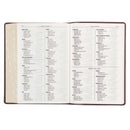 The front of this super giant print Bible features a presentation page, providing the perfect opportunity to personalize it with a heartfelt and encouraging message when presenting it as a gift. This thoughtful addition allows you to make the Bible even more meaningful and memorable for the recipient.