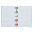 Muted watercolor splotches in shades of pale pink, teal, and blue adorn the barely pink background of the wirebound journal. Gold-foiled speckles scattered throughout lend a shimmering touch to the design, while the heartfelt sentiment stands out in gray lettering nestled in the center of the artwork.