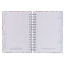 Double-coiled silver wire binding is used to bind the 192-page journal. The creamy white interior pages are lined, and each page features a unique Bible verse that can be used as a journal or prayer prompt. The hardcovers and sturdy wirebound binding make it easy to use the covers as a hard surface to write on.