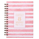 This large hardcover wirebound journal is perfect for writing prayers and blessings for a little one. The cover proclaims the worth of all God's creatures in the words from Psalm 139:14, "I praise you because I am fearfully and wonderfully made; your works are wonderful, I know that full well." Note your blessings as you write in this cheerfully designed journal with its pink and white stripes. Be inspired to document the wonderful works of God you reflect on the Scripture verses printed on each page of this journal. Give this journal as a gift to the special women, daughter or friend in your life.