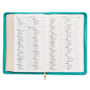 The Teal Faux Leather King, James Version Deluxe Gift Bible with Thumb Index and Zippered Closure will be the crowning glory of a teenage girl's spiritual toolbox and makes an excellent gift to celebrate significant milestones such as an important birthday or a significant event like a baptism.