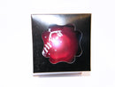 Gemaakt van glas in rood en met een gouden rand. Print is gezet in het wit.