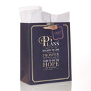 Wrap your graduation gift in this navy and gold Medium Gift Bag: For I Know The Plans – Jeremiah 29:11. The graduate who receives your gift will admire the navy and gold gift bag, along with the inspiring verse from Jeremiah 29:11, “‘For I know the plans I have for you,’ declares the Lord, ‘plans to prosper you and not to harm you, plans to give you hope and a future.’” Before the graduate even unwraps the graduation gift, they will read the verse from Jeremiah 29:11 verse and know this hopeful truth that whichever road they choose to take, the Lord is watching over them and making plans for their future.