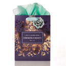 Warmly designed with charming florals and greenery, the Medium Gift Bag: Strength And Dignity – Proverbs 31:25 comes with one sheet of teal tissue paper for wrapping your Christian gift with love, a matching gift tag and two satin teal handles for easy transporting of the floral gift bag from your home to the home of your loved one.