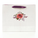 The back panel features a small bouquet in the same style. This roomy floral gift bag is perfect to hold a variety of gifts to show thankfulness and appreciation to another in return for their kindness.