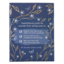The in-between size of these cards makes their application plentiful; they can serve as bookmarks in books, be added to a birthday card for a unique spiritual touch, framed and placed in the daughter's room, and taped to the refrigerator or mirror. In short, they are perfect for any spot inspiration is needed. They also pair well with the Life Lists for Women Book.