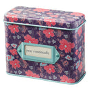 Pink and blue modern flowers sweetly embellish the deep purple exterior of the durable matte tin, while the inside and edging sport a light blue finish. A blue metal label on the front of the tin carries a removable tab printed with the reminder to “pray continually.” Inside are fifty double-sided cards, each with a theme titled prayer on one side, and a lined space to write out your own prayers.