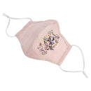 In contrast, the reverse side of the mask features a darker pink floral design. The mask is constructed from a soft cotton blend that will not irritate your face, and you can adjust the white ear loops and pliable nose wire for a perfect fit. A pocket is included for adding in a filter of your choice for an extra level of protection.
