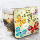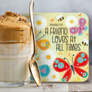 Wording on coaster: ‘A friend loves at all times’- Proverbs 17:17