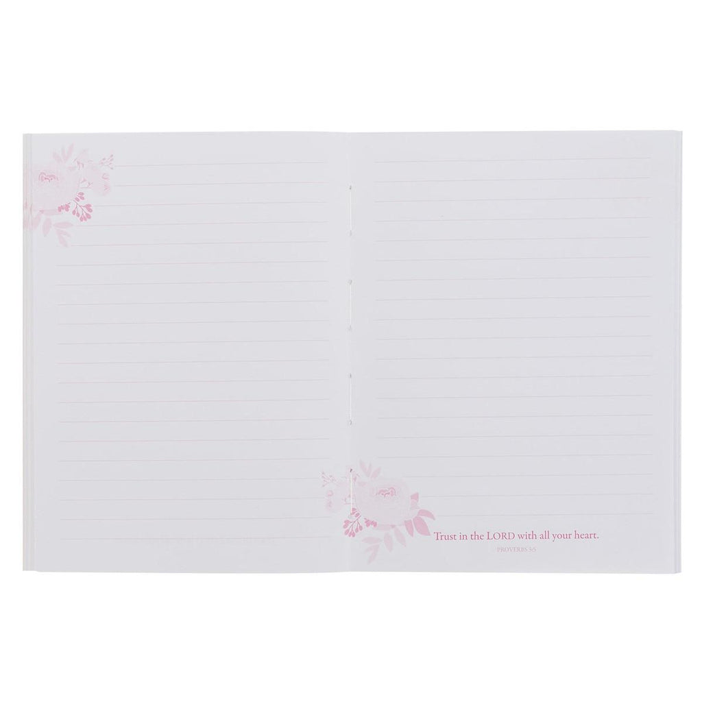 The Trust in the Lord Pink Floral Medium Notebook offers a calming reminder that calls you to surrender and rely on God completely. With its blush pink background and elegant floral design, this notebook is a reminder to trust God even in the small things.