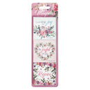 The magnets follow a pink and white theme with tranquil floral designs in pinks, purples, and greens. Text and Scripture are displayed on the Rejoice Magnet Set.