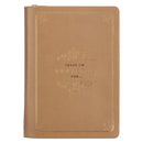 Use the beautiful Grateful Butterscotch Faux Leather Classic Journal with Zipper Closure to keep track of the bountiful blessings in your life. A beautiful gold foiled frame runs along the topstitched edges of the smooth butterscotch cover and features elegant scroll corner motifs. It surrounds the sentiment that is presented in black letters accented with gold foil. Gold foiled floral swags sandwich the sentiment at the top and bottom. Today I Am Grateful For... A sturdy zippered closure with a gold-toned metal zipper pull ensures that the journal closes securely. The journal features 336 lined pages, each featuring a Scripture verse printed at the bottom. The Grateful Butterscotch Faux Leather Journal with Zipper Closure is part of theGive Thanks Collection that includes a ceramic coffee mug, wirebound journal, large notebook set, faux leather bookmark, ceramic gratitude jar, writing paper and envelope set, and gift bag. Gratitude is a beautiful attitude, and the Grateful Butterscotch Faux Leather Journal with Zipper Closure makes a fine birthday gift for a friend or sister who practices mindfulness. Gold foiled floral swag design with black text accented with gold foil Butterscotch faux leather journal Give Thanks Collection Today I am grateful for... Flexcover Zipper closure Gold zipper pull One-color interior 336 lined pages Scripture on every page Size: 229 x 163 x 223mm