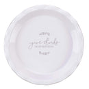 Show your grateful heart with the Give Thanks in Everything 9.5-inch Plate. "Give thanks in everything, is taken from 1 Thessalonians 5:18 and turns our hearts to focus on what we have, rather than we don't have. The 9.5-inch ceramic pie plate has fluted edges for creating beautifully scalloped pie crusts. A neutral taupe exterior and crisp white interior decorated with the simplistic design of thyme sprigs and the words "Give Thanks in Everything" make this an elegant piece for the table.