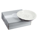 The ceramic pie plate comes packaged in a coordinating gift box, ready to be wrapped for as a gift. Pair the pie plate with a coordinating tea towel, spoon set, trinket tray, wall art or soap dispenser from the Give Thanks Collection to create a fantastic coordinated Housewarming gift or a special wedding gift that will be used for years to come.