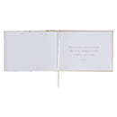 The guestbook has 160 lined pages, providing plenty of space to capture the attendees' names and well-wishes. An ivory satin ribbon marker helps you mark your page, while beautifully designed pages with Scripture are scattered throughout the book to offer moments of inspiration and reflection. This guestbook is perfect for preserving and revisiting your cherished memories on anniversaries and special occasions. Its sturdy gift box with a clear acetate lid will keep it in good condition for a lifetime.