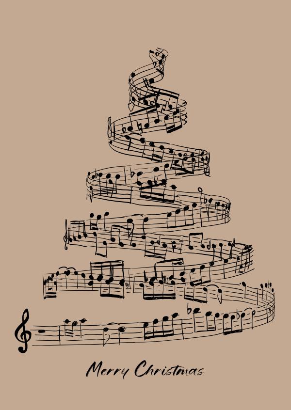 Celebrate the season with this elegant double Christmas card, designed especially for music lovers. Featuring a christmas tree of musicnotes in the shape of a christmastree, it strikes the perfect chord between festive charm and vintage flair.