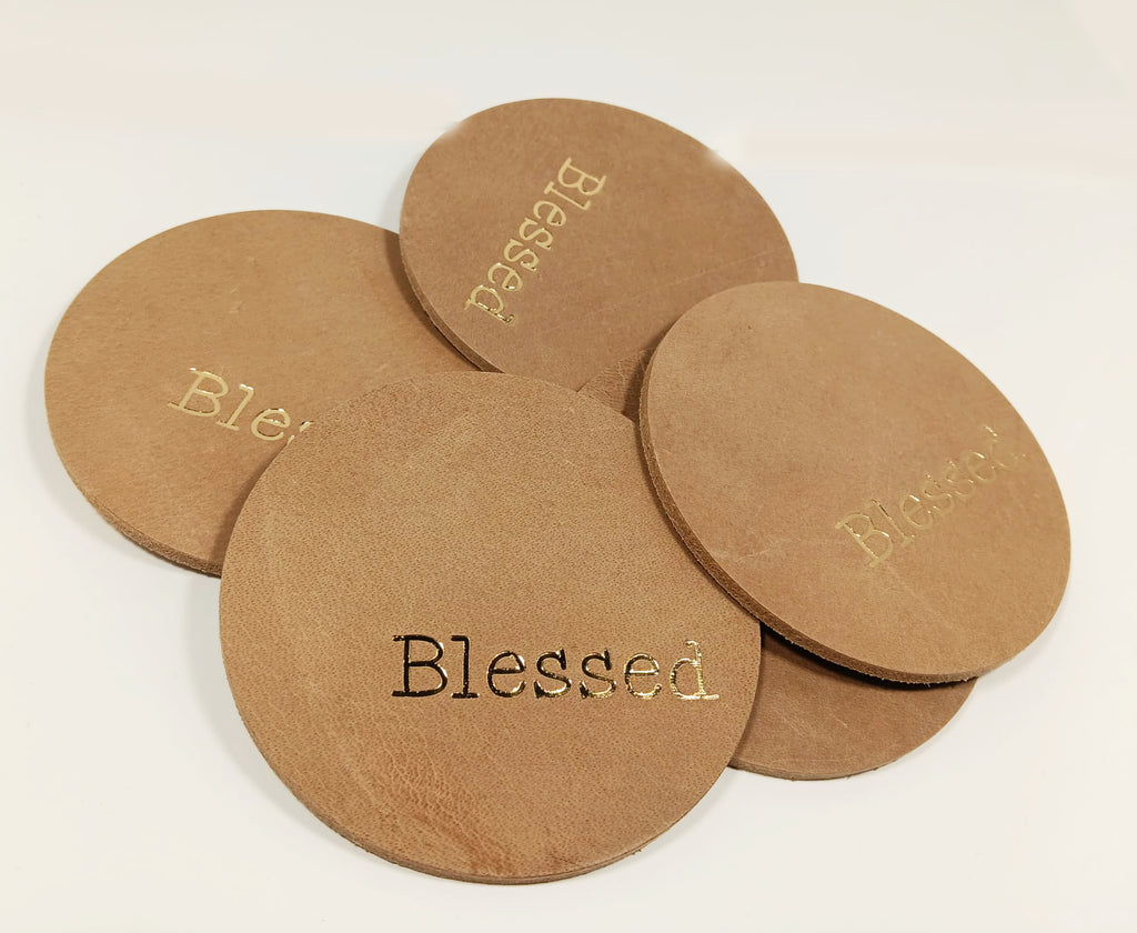 Deze stijlvolle leren onderzetters beschermen tafel en zijn een prachtig natuurproduct. Gemaakt van 3mm dik leer met gouden opdruk. Bij goed onderhoud gaan ze jarenlang mee. Ze zijn duurzaam gemaakt om condensatie van koude dranken te absorberen.