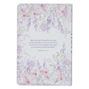 The back cover repeats the same floral motif and includes a blessing from the book of Romans, printed in purple.