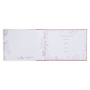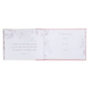 Inside, a monochromatic layout elegantly incorporates inspirational Scripture verses between the lined pages. To mark pages easily, a satin ribbon marker adds a touch of class. With 160 lined pages, there's ample space for guests to acknowledge their attendance and pen down special notes. For added convenience, this charming guest book is packaged in an acetate gift box, making it an ideal gift and ensuring its safe storage.