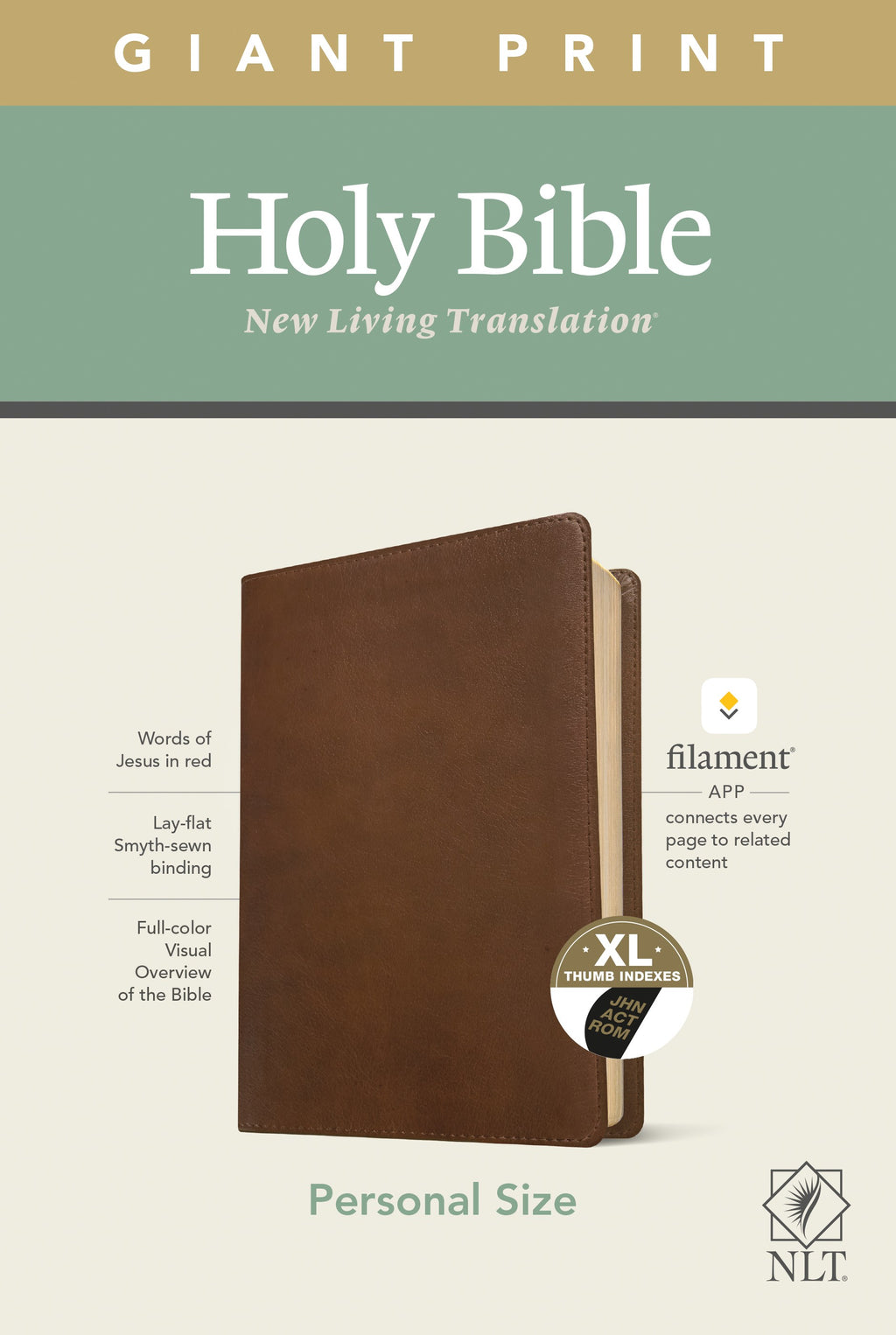 Bible Reading: IlluminatedThe new Tyndale NLT Personal Size Giant Print Bible, Filament-Enabled Edition, has readable text and an attractive layout in an easy-to-carry size. And while it has the same low price as basic, text-only Bibles, the NLT Personal Size Giant Print Bible offers much more. It not only features a bold new design and the trusted and much-loved New Living Translation (NLT) but also includes the groundbreaking Filament Bible app, which turns this Bible into a powerful study and devotional experience, offering more to expand your mind and touch your heart than you can possibly hold in your hand—at no additional cost, no additional bulk or weight. Read this Bible on its own, or dig deeper with the Filament Bible app. Use your mobile phone or tablet to connect every page to a vast array of related content, including:25,000 study notes350+ videos40+ maps and infographics400+ profiles and articles1,500+ devotionalsLibrary of worship musicSpecial features include:New, easy-to-read page designsFilament content linked to every page!Readable large printHandy, thin sizeWords of Jesus in redQuality lay-flat Smyth-sewn bindingTyndale Verse FinderPresentation pageRibbon markerGilded page edges
