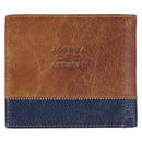 The men's wallet is crafted from soft, genuine leather. It features a navy leather panel at the base that is attached to a butterscotch faux leather panel at the top, where the sentiment is heat-debossed in a strong script. The Scripture reference is heat-debossed on the back.