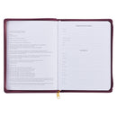 A crises Scripture guide in the back of the planner lists Bible verses according to the topic. It also includes space to record the names and addresses of friends and family.