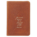 Take comfort in the guidance and providence of the LORD and plan out your future in The Path of Life Saddle Tan Handy-sized Full Grain Leather Journal.