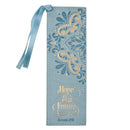The Hope & a Future Powder Blue Faux Leather Bookmark is visually captivating while serving as a remembrance for any girl or woman who is uncertain about her future: God has it all under control.