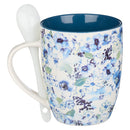 The glossy navy blue interior of the 380ml capacity cup picks up the navy pistils of the flowers in the design and a white ceramic spoon is nestled securely in two slots cut into the handle. The gift-ready mug comes packaged in a gift box. This mug-and-spoon combo is great for use in an office, teacher's lounge, or dorm room.