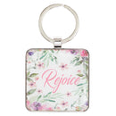 Made from metal and an epoxy-filled resin on the front and back, the print on the front has a vibrant floral watercolor border that is sure to be eye catching. The front of the keyring simply states "Rejoice" while the back includes the text from Philippians 4:4: "Rejoice in the Lord always." There is a split keyring clip which allows for other keys to easily be added or removed. Conveniently sized and designed, this keyring will not get in the way and will last for years to come.