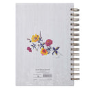 Lenteboeketten in felle kleuren sieren de cover van het hardcover spiraalgebonden dagboek 'Be Joyful Always'. Deze opdracht om vreugdevol te zijn, is te vinden in 1 Thessalonicenzen 5:16: "Wees altijd vrolijk." De vreugde van een christen komt voort uit de wetenschap wie je bent in Christus en wat Christus voor je heeft gedaan. Deze oproep tot vreugde staat speels in roze op het spiraalgebonden dagboek.