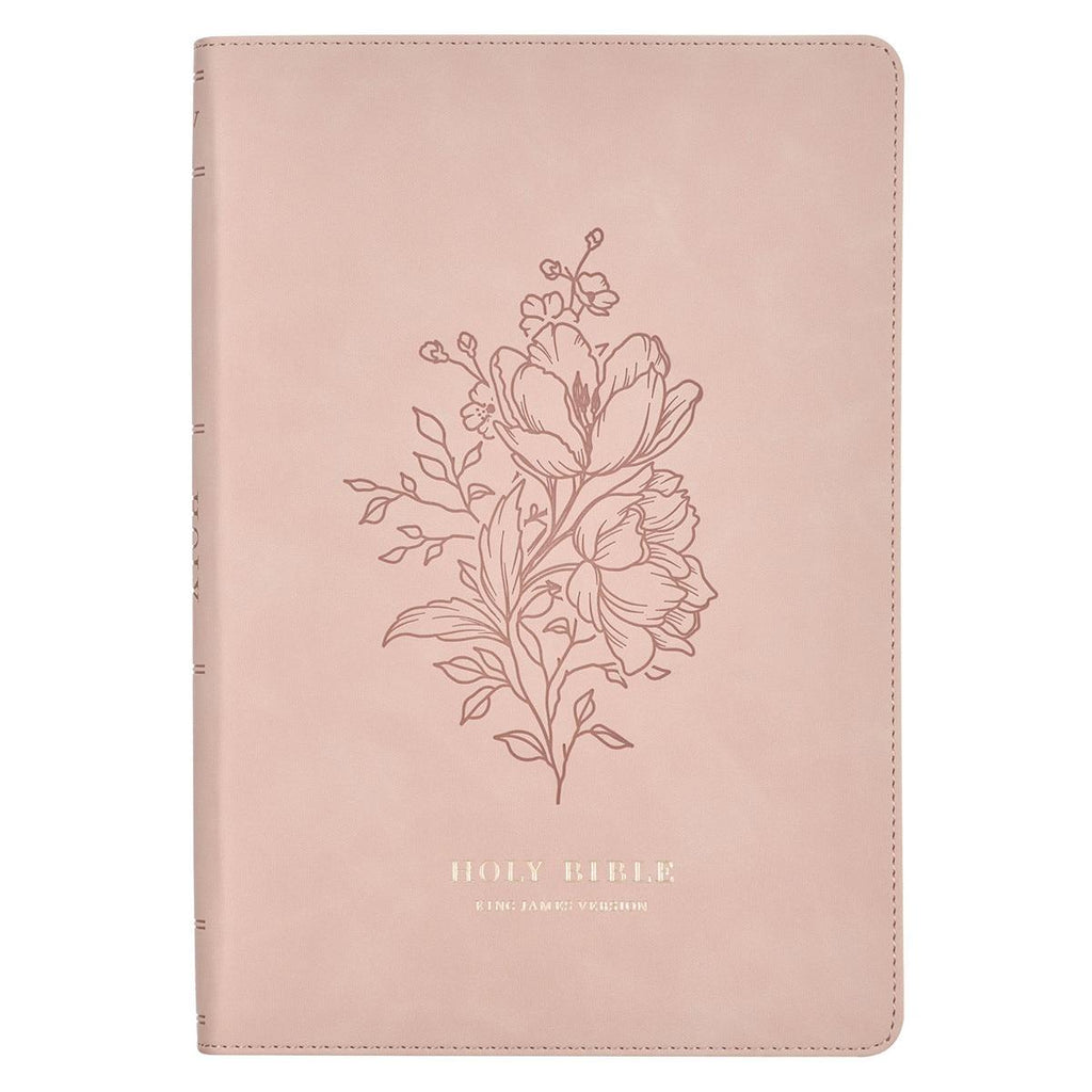 KJV Bible Thinline LP Faux Leather Flowers, Pink