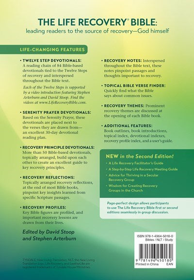 De Life Recovery Bible, 25e jubileumeditie, wijst God zelf aan als de belangrijkste bron van herstel. Miljoenen mensen zijn geholpen door deze Bijbel. Nieuwe artikelen bieden een frisse kijk op herstel. Leiders krijgen hulp in de vorm van een algemene gids voor begeleiders en een stapsgewijze handleiding voor bijeenkomsten. Deze bieden hulp aan iedereen die herstelgroepen start of leidt in de kerk of in de gemeenschap. Kenmerken: Nieuw inspirerend voorwoord Artikel: Een woord over verslavingen Artikel: Een vroege geschiedenis van levensherstel Artikel: Bloeien in een seculiere herstelgroep Artikel: Levengevende herstelgroepen in de kerk Handleiding voor de Life Recovery-begeleider Stapsgewijze handleiding voor levensherstelbijeenkomsten De 12 christelijke fundamenten van levensherstel De 12 vanzelfsprekende waarheden van levensherstel Bronnenpagina, die lezers naar nuttige boeken en online bronnen leidt