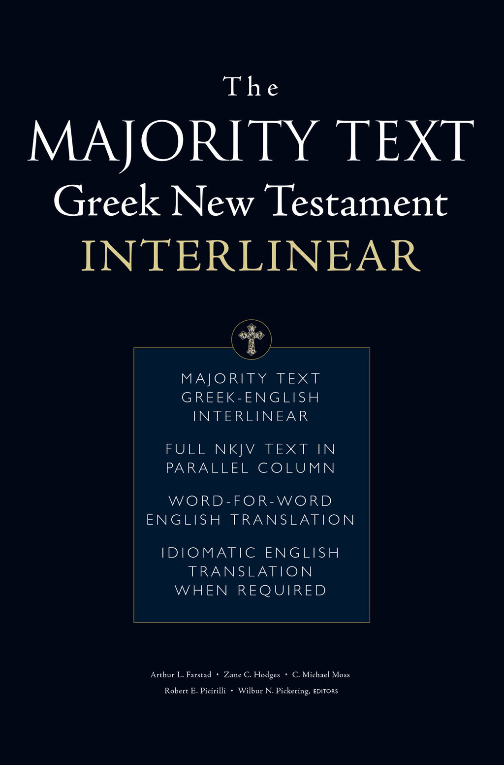 De Majority Text Greek New Testament Interlinear behoudt alle informatie van de Bijbeltekst, maar presenteert deze op een gemakkelijk te begrijpen manier. De typische interlinear voegt één Engelse vertaling tussen de regels van het Grieks in om het vergelijken van Grieks met Engels te vergemakkelijken. De Majority Text Greek New Testament Interlinear is uniek omdat hij: