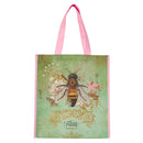 De Faith Bee Green Non-Woven Coated Tote Bag maakt deel uit van de Green Secret Garden Faith Bee-collectie, die bestaat uit een hardcover dagboek, herbruikbare tas, cadeauzakje, onderzettersset en magneetset.