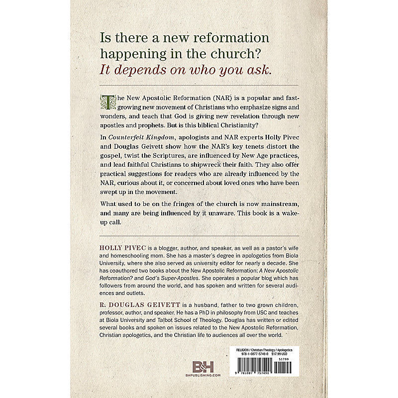 In Vals Koninkrijk, Apologeten en NAR-experts Holly Pivec en Douglas Geivett laten zien hoe de kernprincipes van de NAR het evangelie verdraaien, de Schrift verdraaien, beïnvloed worden door New Age-praktijken en ertoe leiden dat gelovige christenen hun geloof verliezen. Ze bieden ook praktische suggesties voor lezers die al beïnvloed zijn door de NAR, er nieuwsgierig naar zijn of zich zorgen maken over dierbaren die door de beweging zijn meegesleurd.